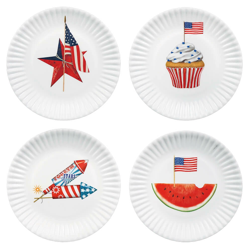 Cheapest π Traditions American Holiday Flag Melamine Plates Set/4 π