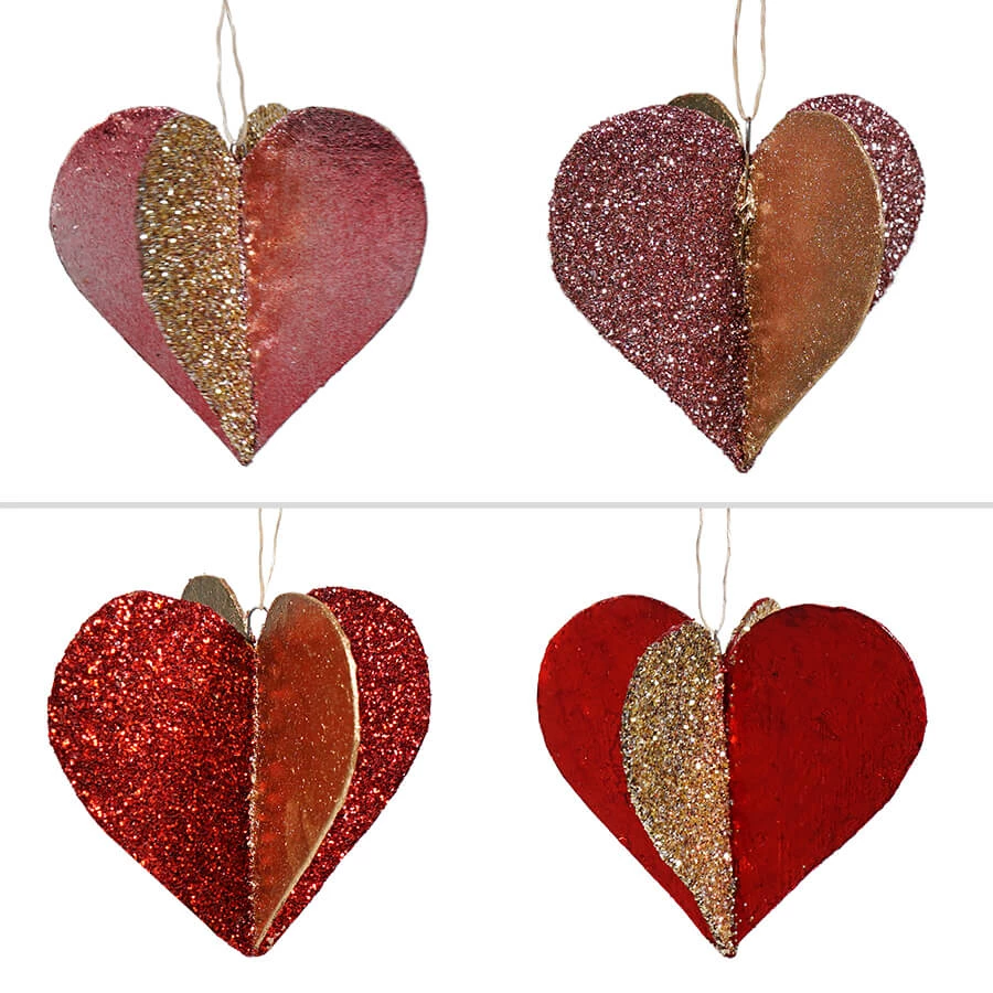 Promo ๐ Traditions Sweet Heart Glitter Foil Ornaments Set/4 ๐
